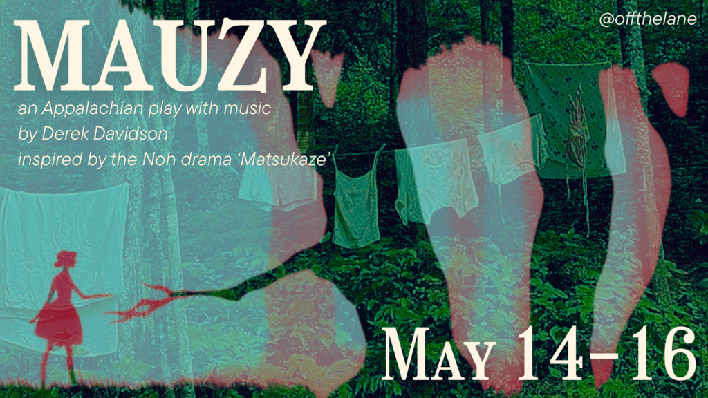Off The Lane’s next ColLab production is “Mauzy” by Derek Davidson: a haunting Appalachian musical folk tale inspired by the Noh drama “Matsukaze”. Set in the misty mountains of 1929, the play follows a traveling preacher who seeks shelter in a remote cabin inhabited by two enigmatic sisters. As stories are shared and the night unfolds, reality begins to blur with memory, myth, and ghostly longing. Blending bluegrass music, storytelling, and the supernatural world, “Mauzy” explores grief, desire, faith, and the stories we tell to survive.